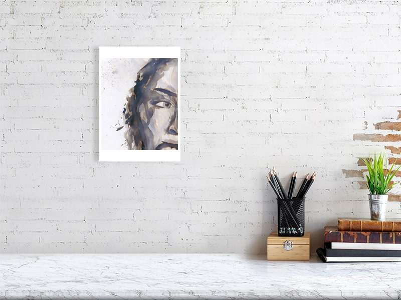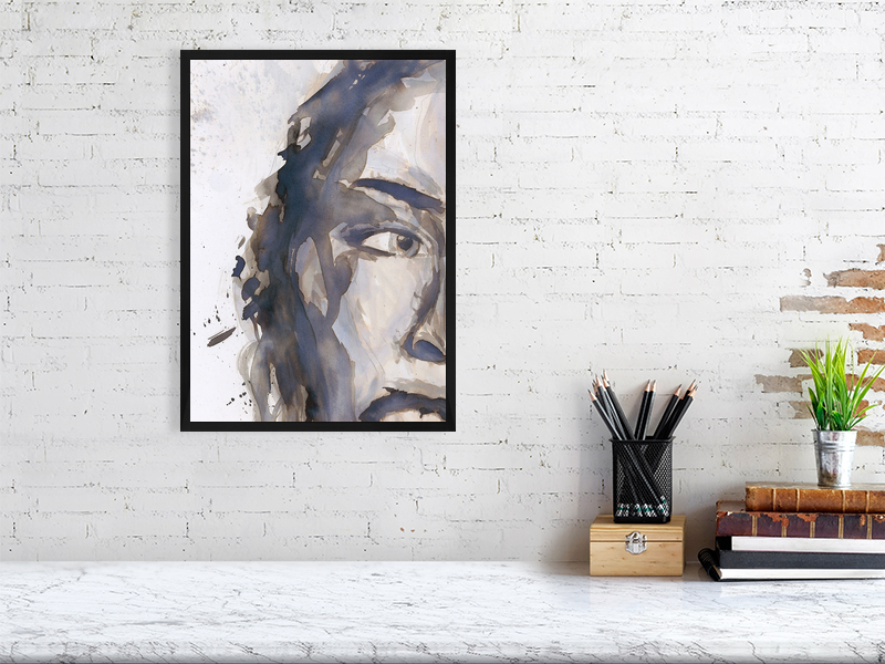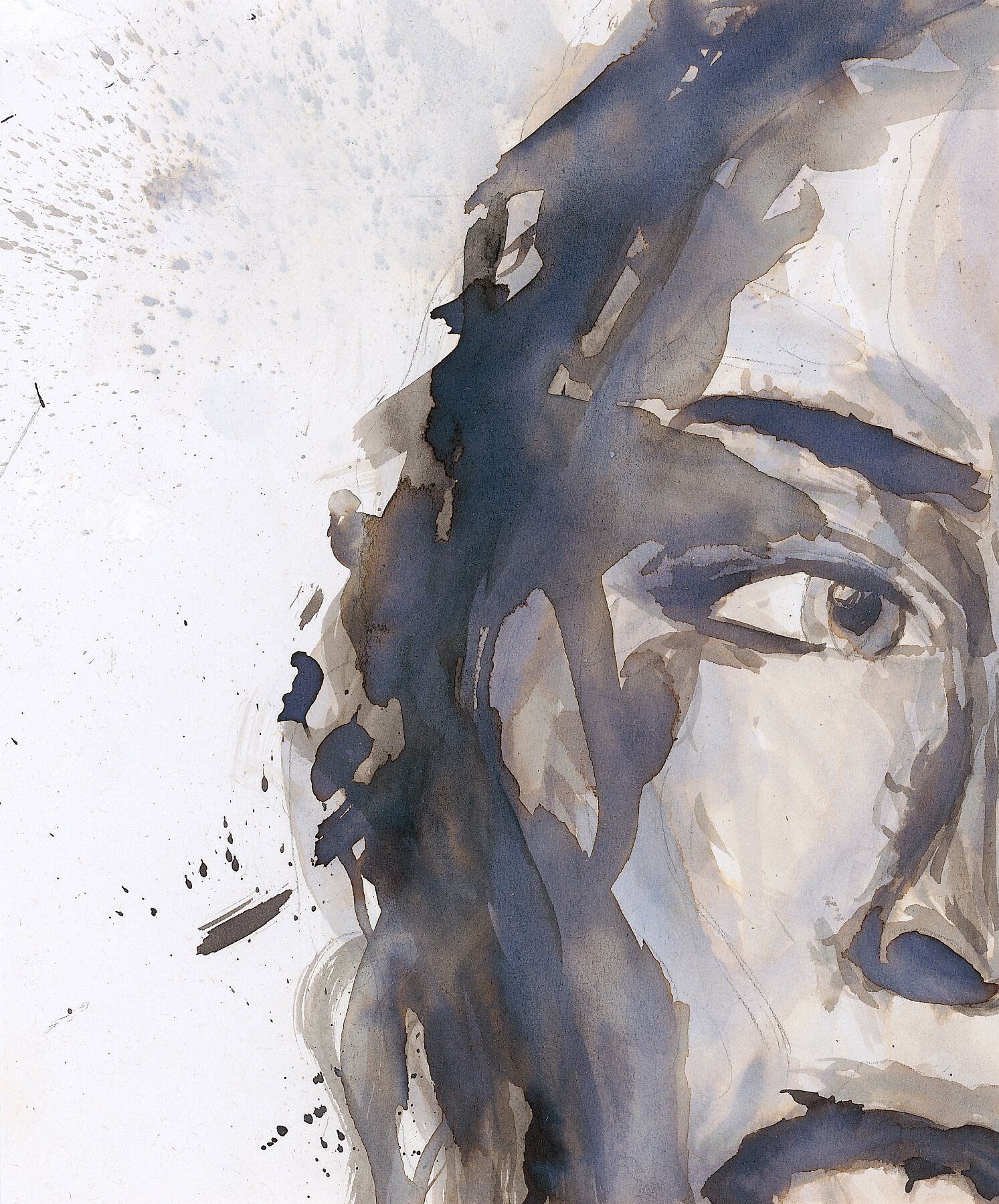 An expressive, abstract portrait in watercolour—boldly unfinished and quietly intense.
