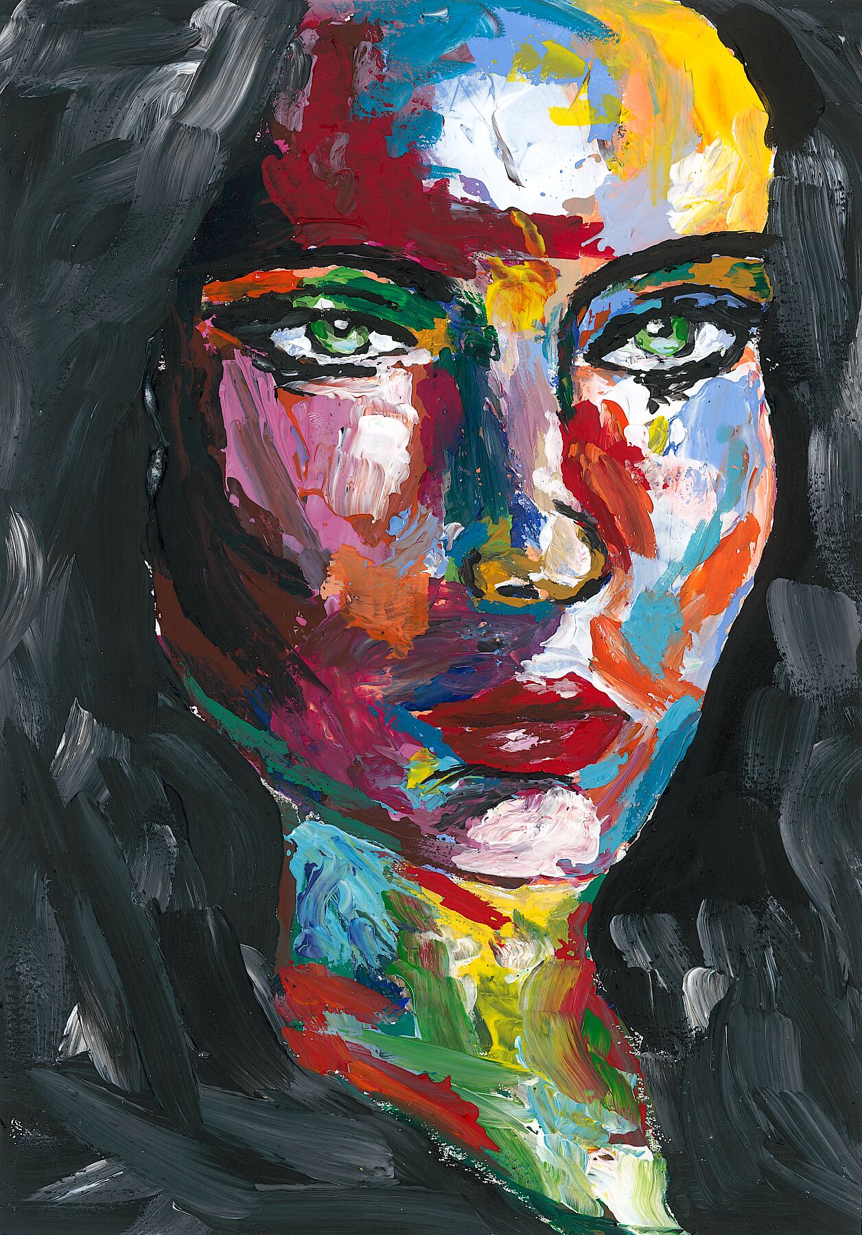 A vivid, full-force portrait that embraces emotion through fearless colour and confident form.