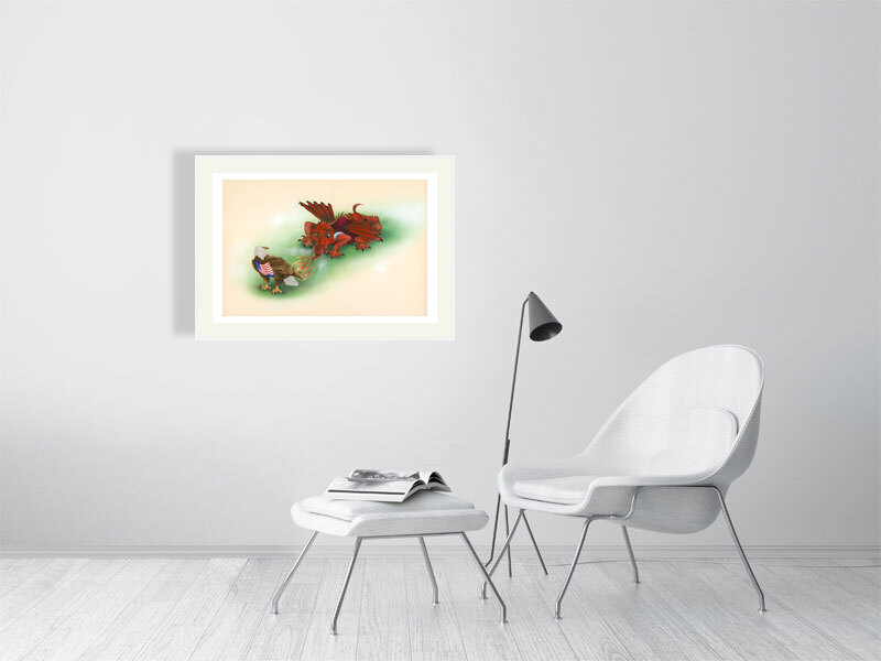 A playful tribute to cross-Atlantic friendship and football rivalry—where myth and symbol meet with a wink.
